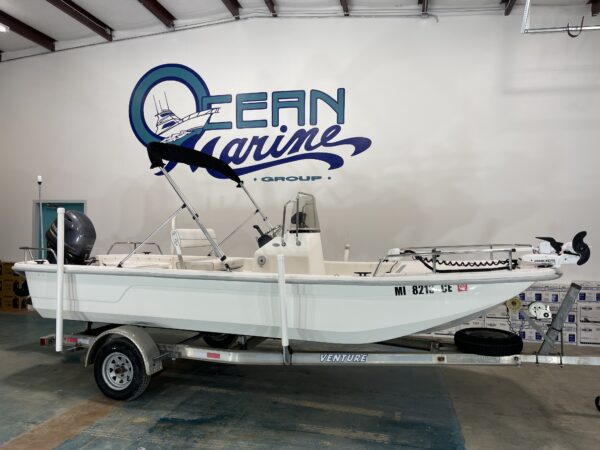 Outfitted with a 55lb Minn Kota iPilot trolling motor, Humminbird Helix 7", bimini top, and a 2-bank onboard charger, this F19 comes ready for a full day on the water—whether you’re fishing the flats, cruising with family, or working shorelines with precision spot-lock control.