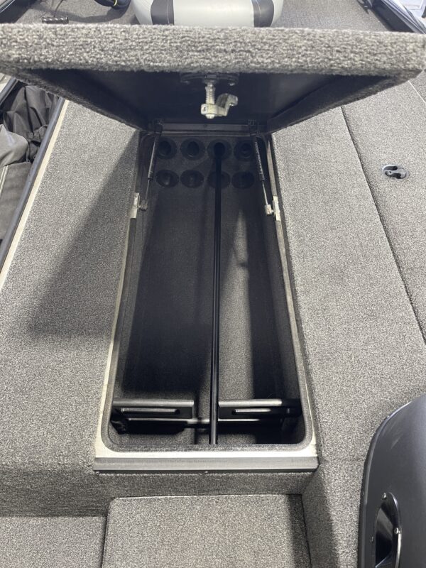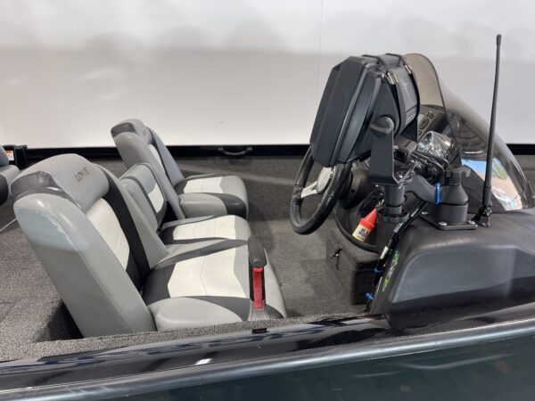 Under the hood, the Mercury 115 4-stroke ensures reliable and efficient power, while the dual-screen electronics setup (Humminbird Helix 7 at the helm, Helix 9 up front) give you excellent visibility on structure, depth and fish location. The Minn Kota 70 trolling motor means you can quietly stalk shallows or finesse areas without scaring the fish, and the onboard charger means you’ll stay ready without worrying about power management.