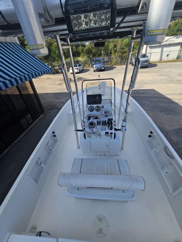 The 2018 Bayliner Element F21 is a versatile 21-foot center console boat designed for families who love both fishing and fun on the water. With its spacious deck layout, the F21 offers plenty of room for up to 10 people to relax, fish, or enjoy a day of cruising. Its innovative M-Hull design provides a stable and predictable ride, making it ideal for families with kids or new boaters. Powered typically by a Mercury 115 outboard, it delivers solid performance for water sports, island hopping, or back bay adventures. The boat features comfortable seating, a self-bailing cockpit, live wells for fishing, and abundant storage for gear and coolers. Whether you’re spending the day casting lines, tubing, or anchoring at a sandbar, the Element F21 blends practicality, comfort, and affordability into a fun, family-friendly boating experience.