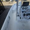 Spacious deck layout: There are large fore and aft decks with storage underneath. The aft casting deck can transform — it has flip-up forward-facing jump seats in the corners. Good for fishing one minute, relaxing with family the next.
