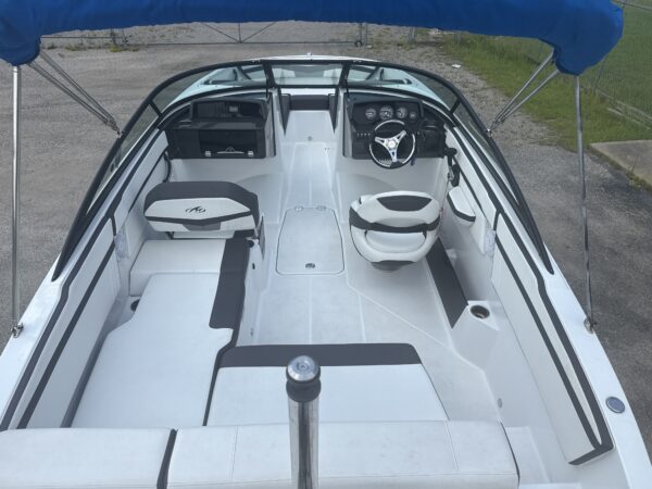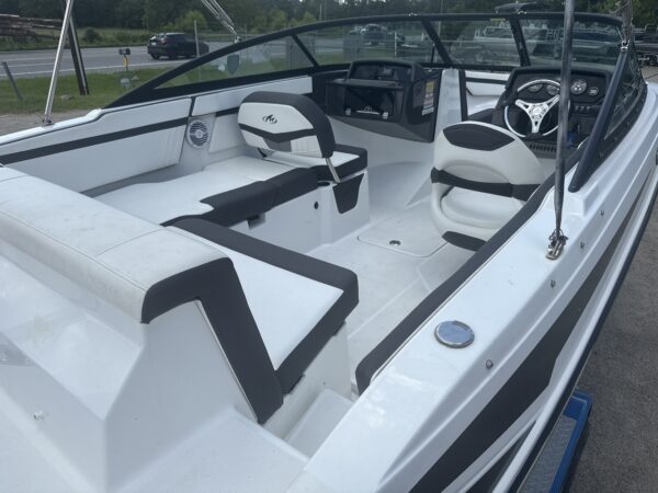 This 2019 Monterey M205 measures 22' 8'' and is powered by a Mercury ProXS 150 with 212 hours. Designed for family fun and weekend cruising, it offers a spacious layout with super clean upholstery, a bimini top for shade, and a ski/tow pole for watersports. Enjoy your favorite tunes on the water with a Fusion radio paired to Rockford Fosgate speakers. The tandem axle trailer ensures easy transport, making this boat perfect for lake days and creating lasting memories.