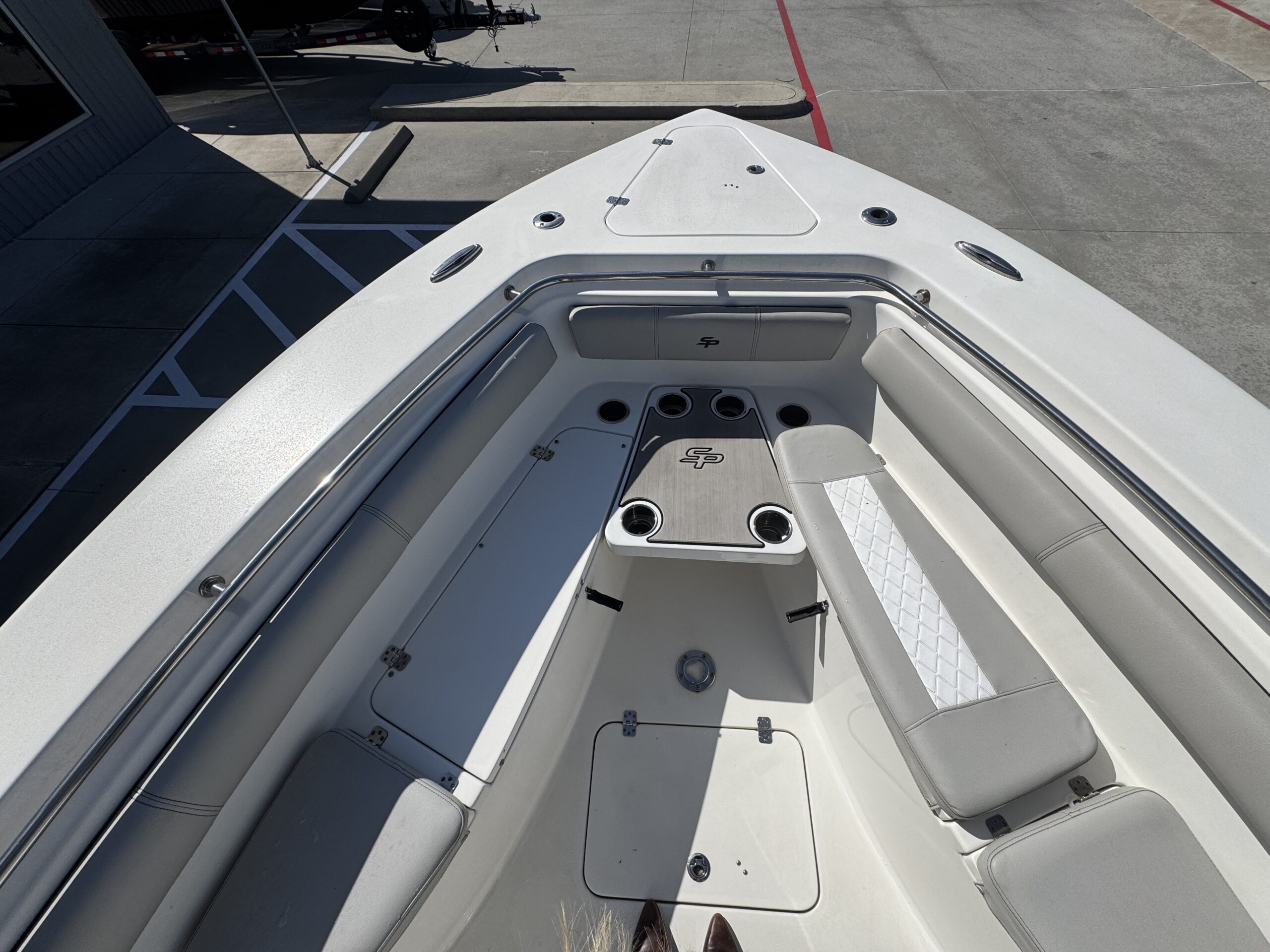 - bow table that lowers to do double duty as a cast netting platform