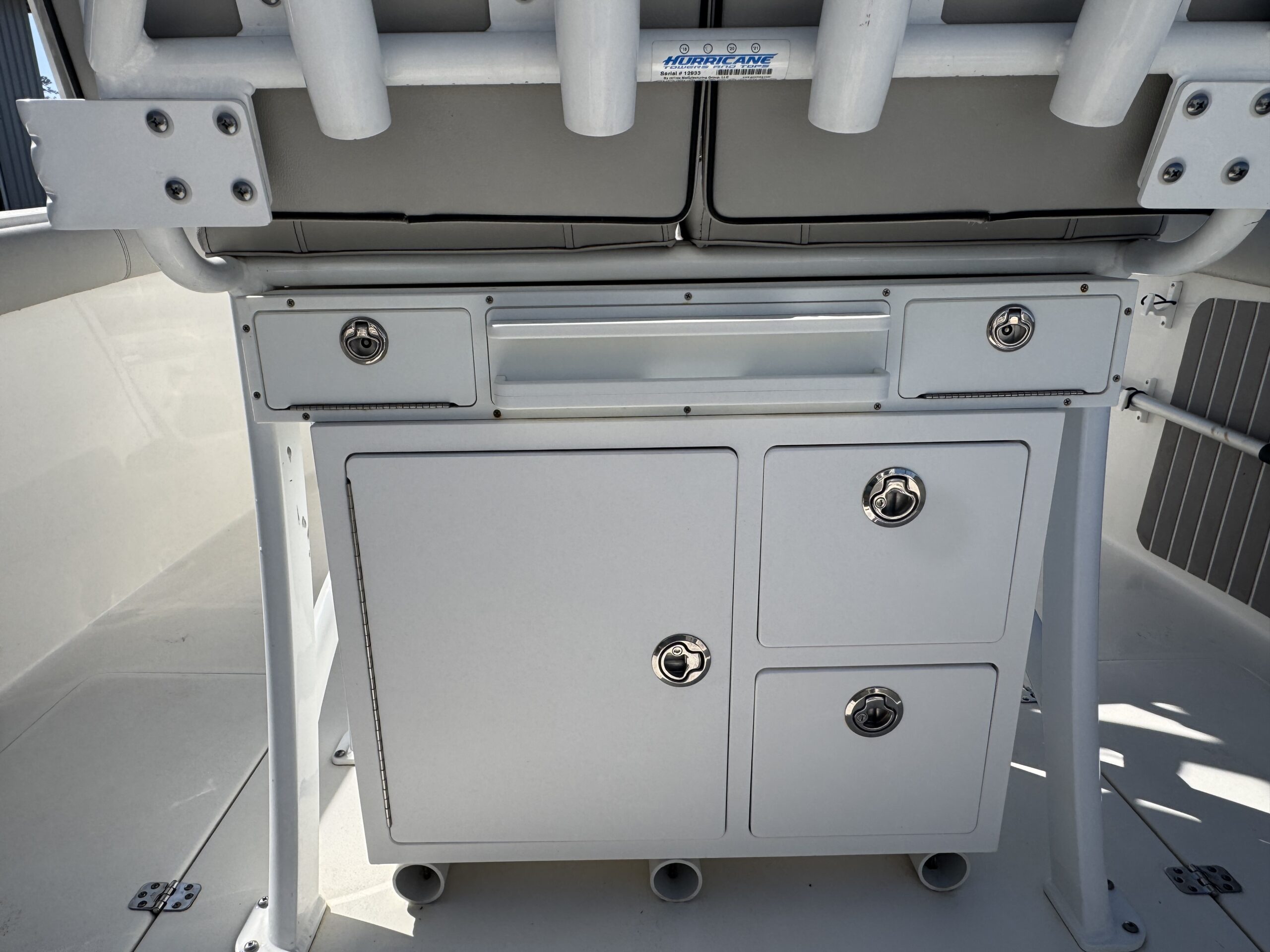 - Horizontal rod stowage is located within the starboard inwale