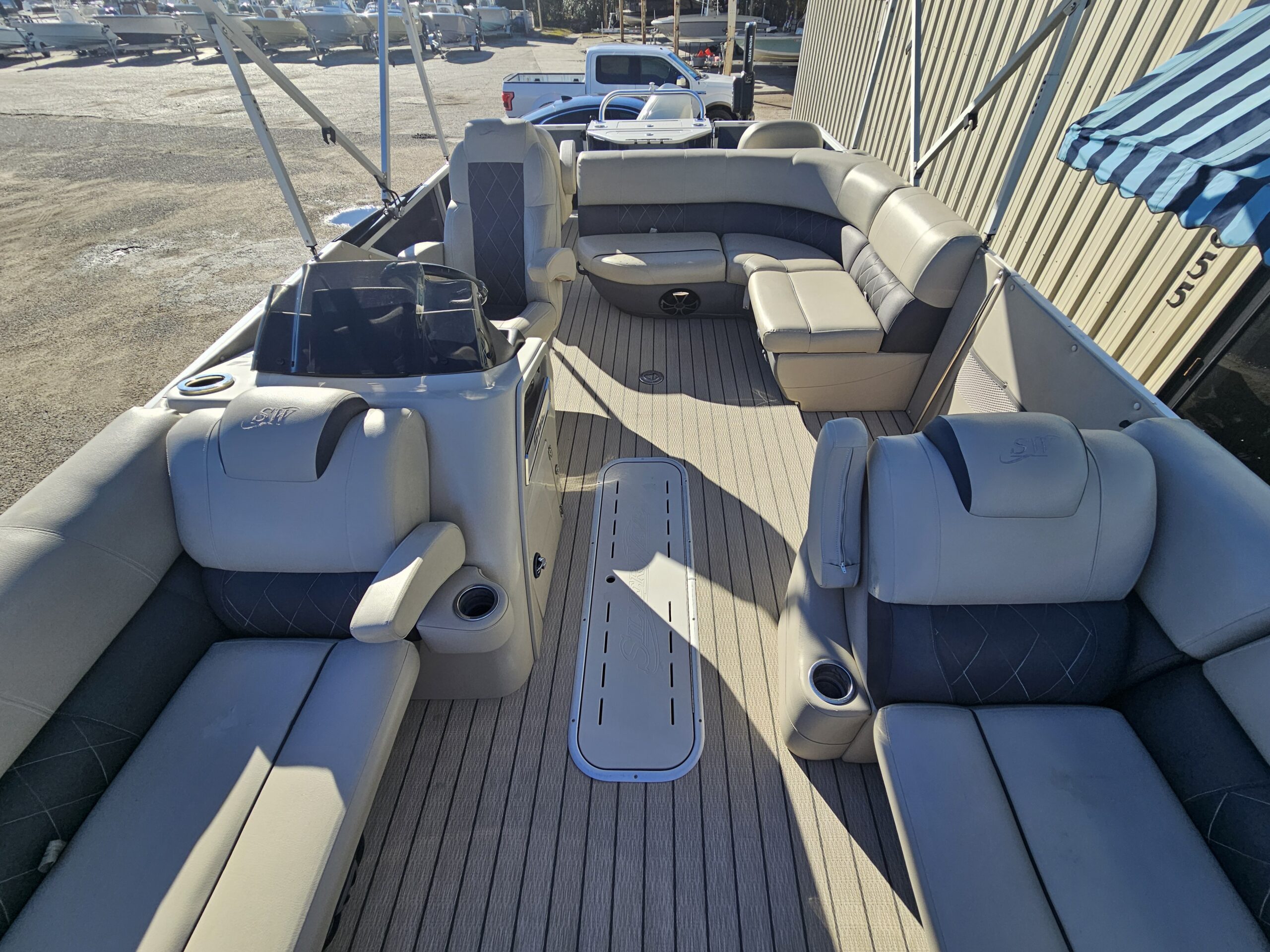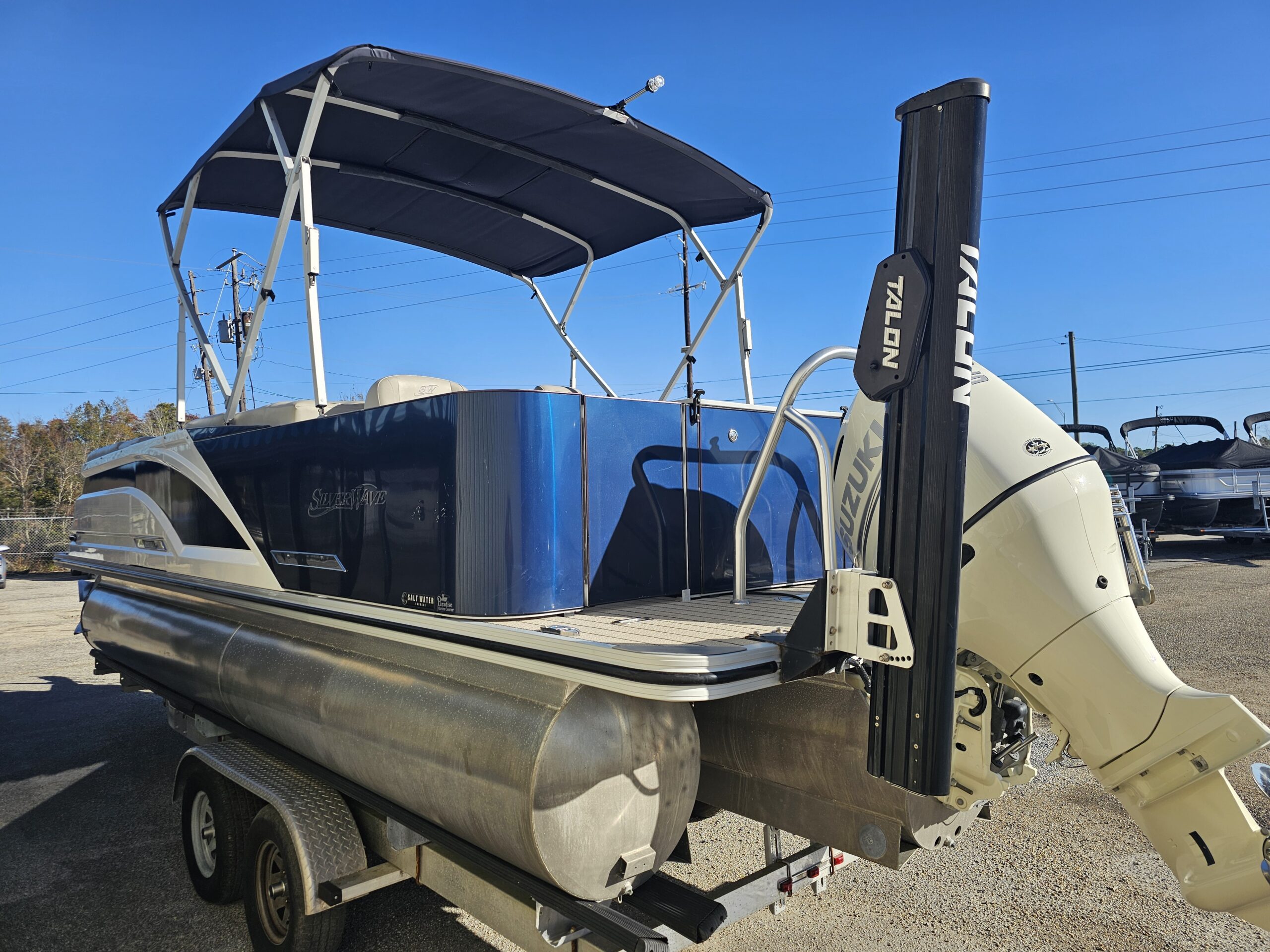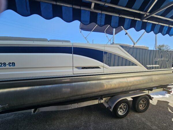 The 2020 Silver Wave triple-pontoon (tritoon) boats are three-tube pontoon models designed for better stability, smoother ride, and higher performance than standard two-tube pontoons, and they were mainly offered in the SW5 and SW7 series that year. These boats typically measured around 24–26 feet in length with an 8′6″ beam, featured aluminum construction, and were available with higher horsepower outboards (often 200–300+ HP depending on model and options), making them suitable for cruising, entertaining, and watersports. The additional center tube improves lift, handling, and speed, especially with heavier passenger loads, while trim levels like JS, CLS, and RL determined seating layouts, amenities, and overall luxury, with SW7 models being the more premium and powerful offerings