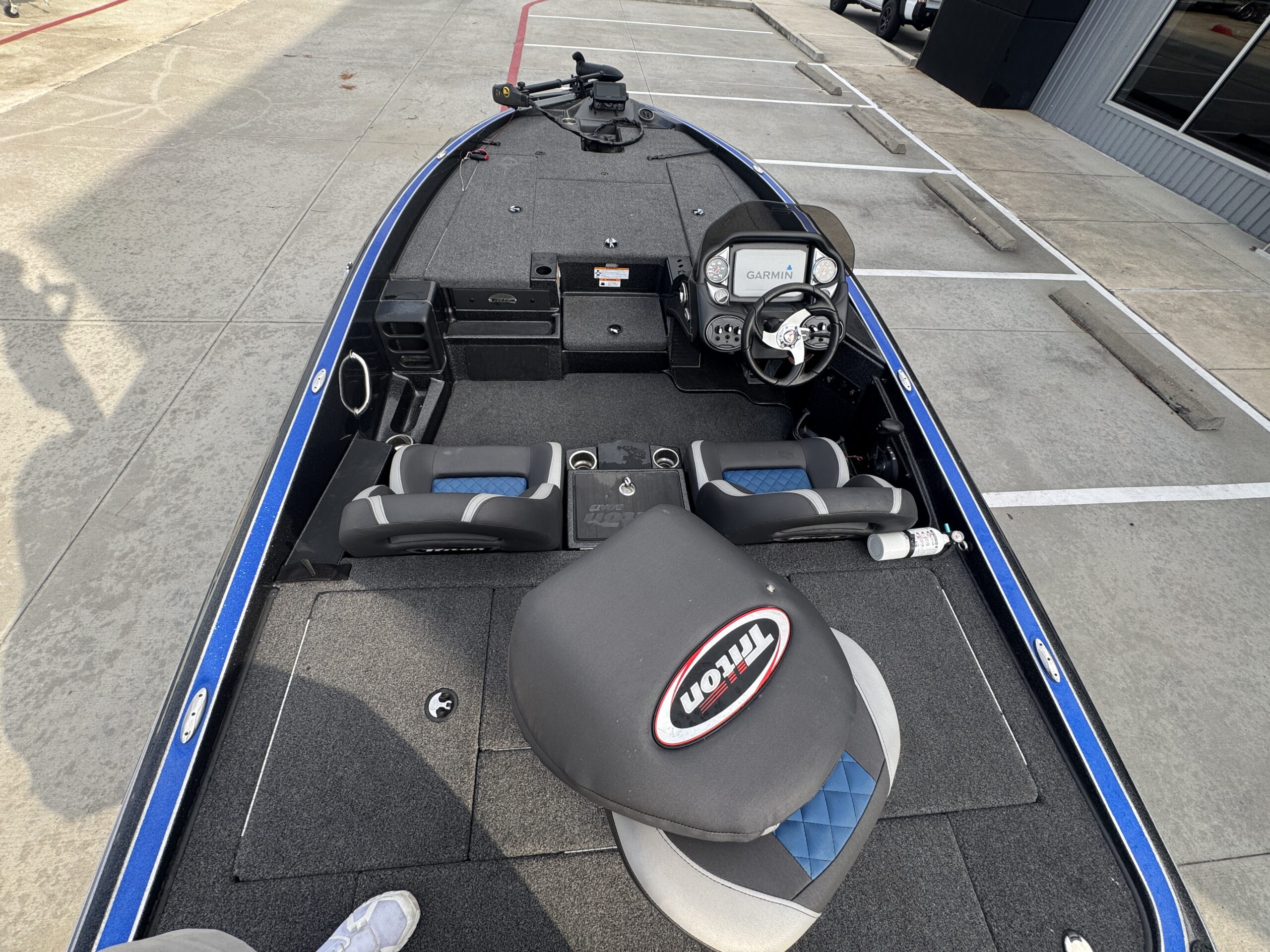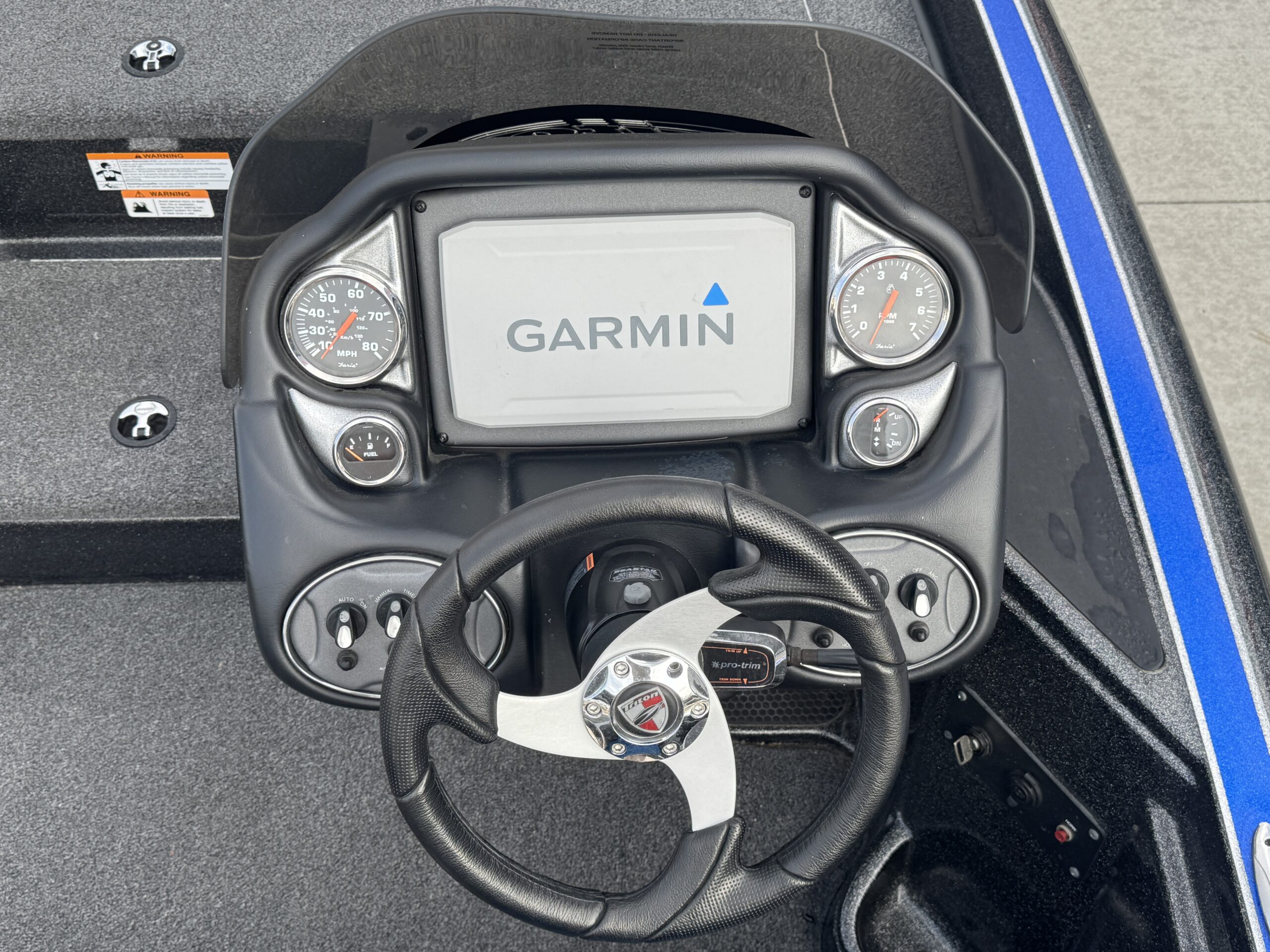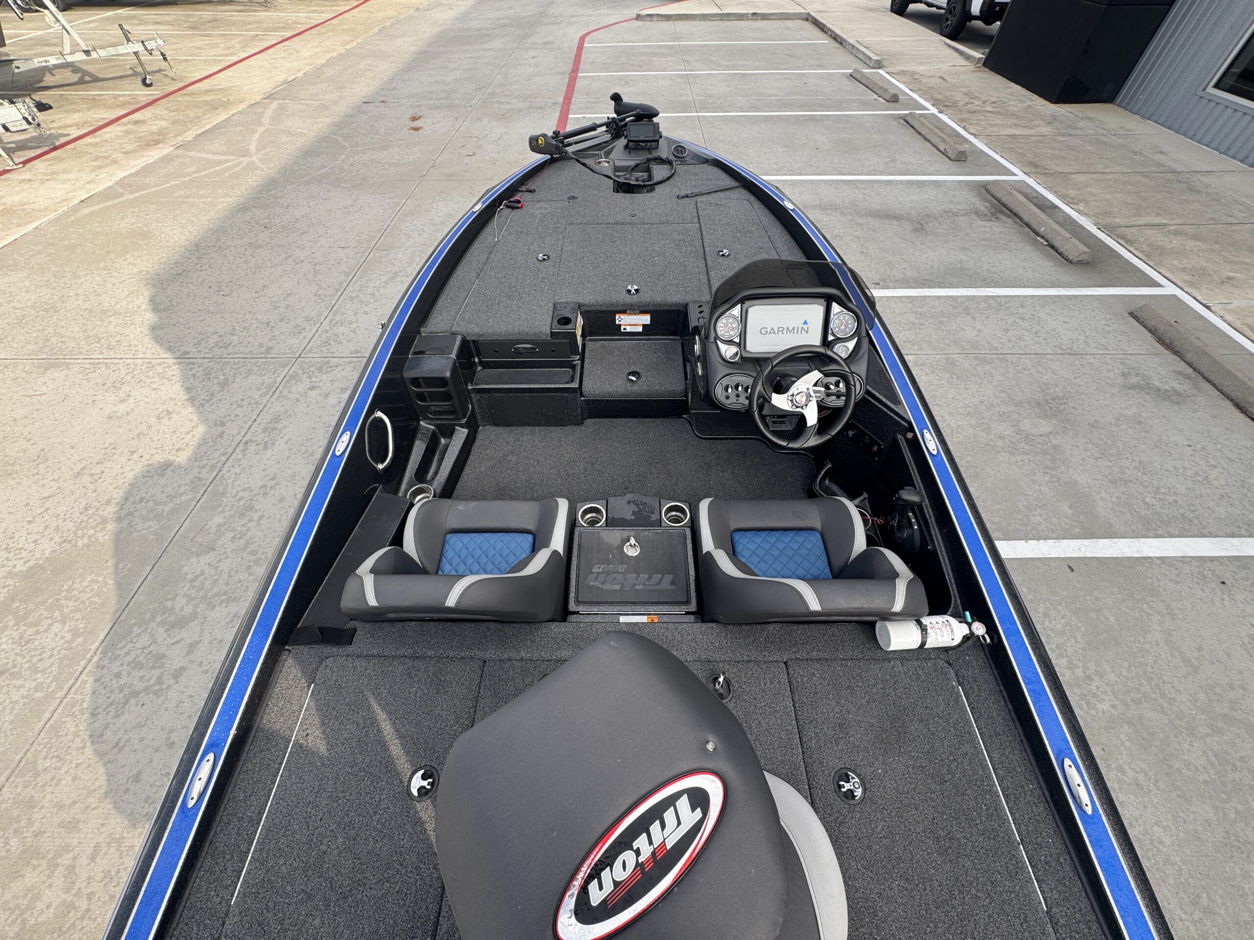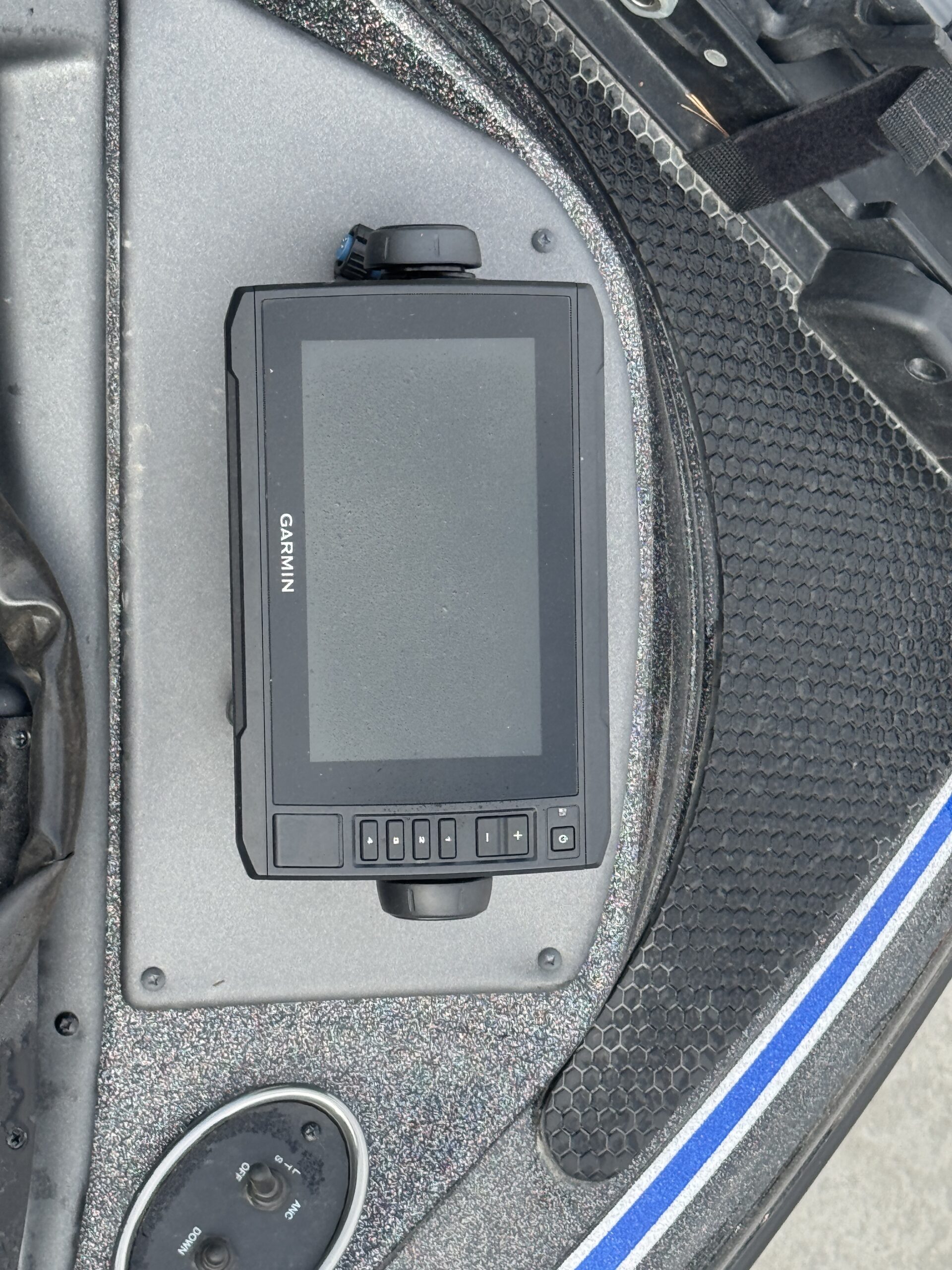 - Garmin units at the console and bow for GPS and sonar