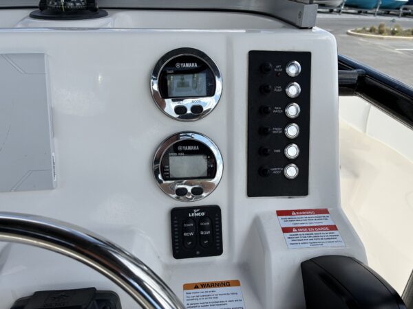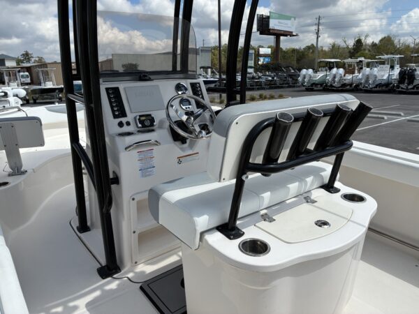 At just over 21 feet, it’s a great size for getting around without the hassle of a bigger boat, but still has plenty of room to comfortably hold a group. The layout is open with seating up front and space to move around, whether you’re hanging out at the sandbar or cruising the bay. It’s got a solid, stable ride for its size, so you’re not getting beat up when the water picks up, and it’s easy to handle whether you’re an experienced boater or just getting into it. With a 90-gallon fuel tank and capacity for up to 10 people, it’s built for full days on the water without feeling limited.
