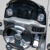 This model features a spacious front casting deck with an oversized livewell, lockable rod storage, and additional compartments for gear and tackle. The cockpit includes comfortable seating, a well-laid-out console with gauges and switches, and a Lowrance fishfinder at the helm. A Minn Kota trolling motor and onboard battery charger make it easy to stay on the fish all day.