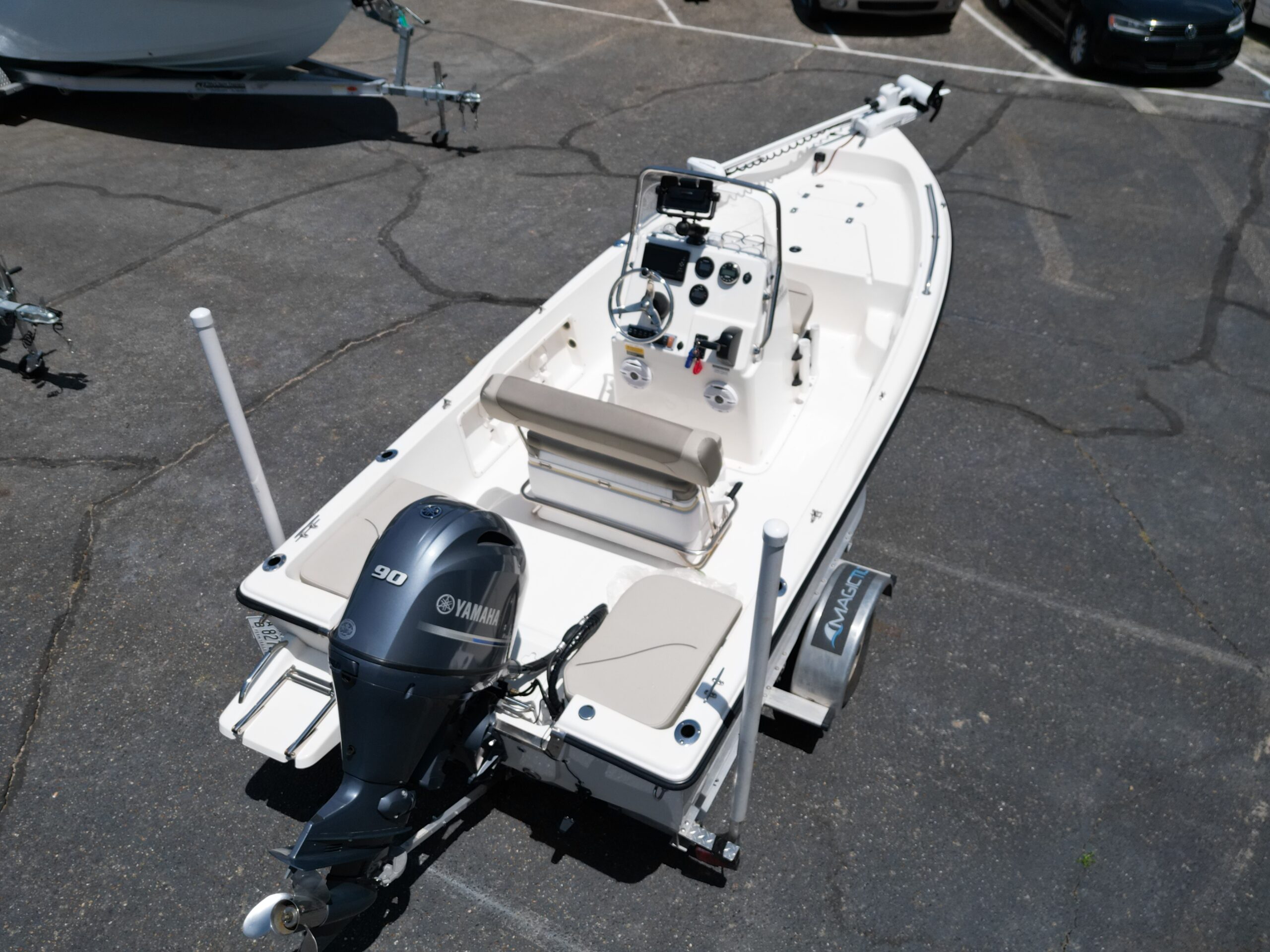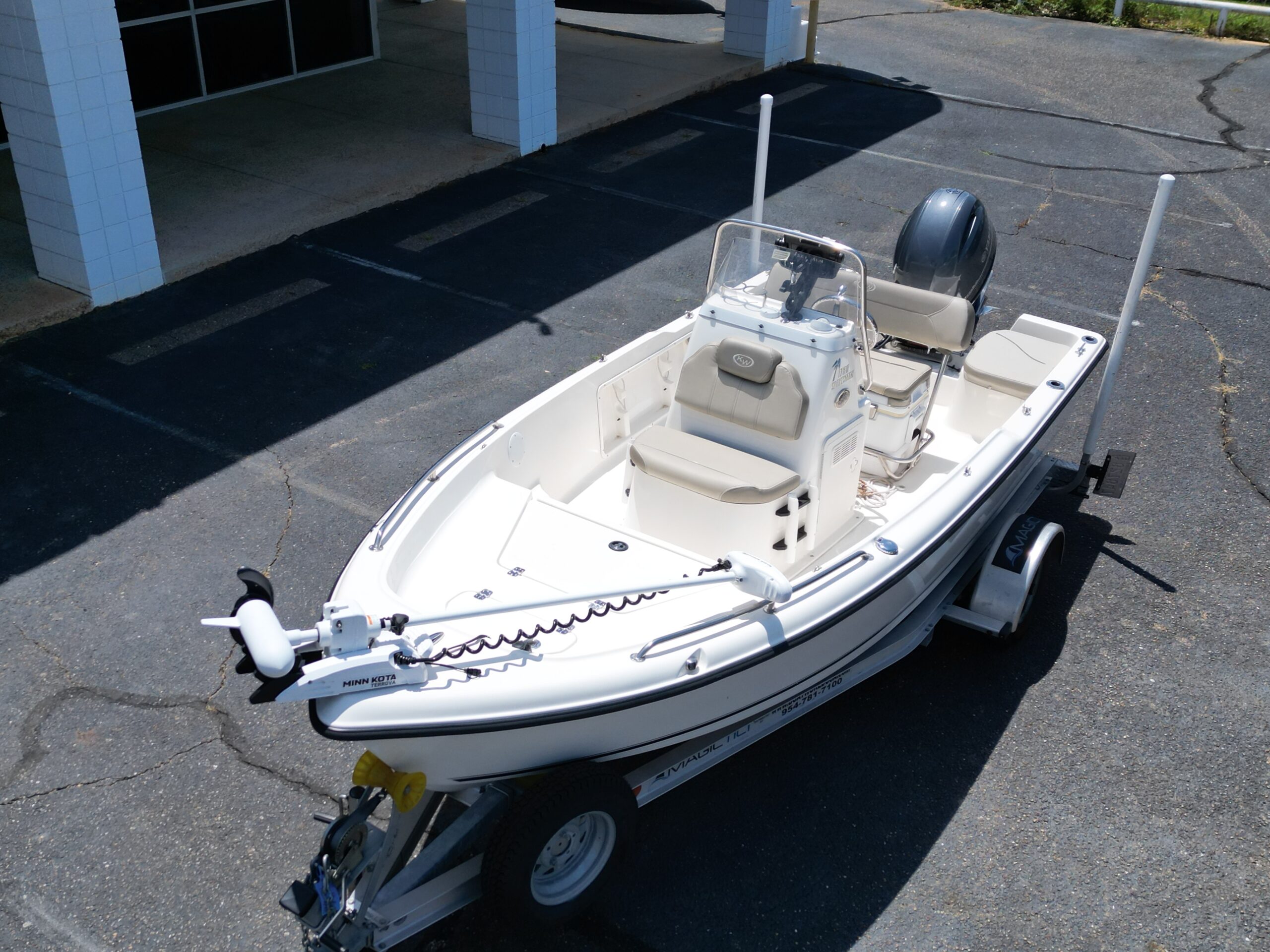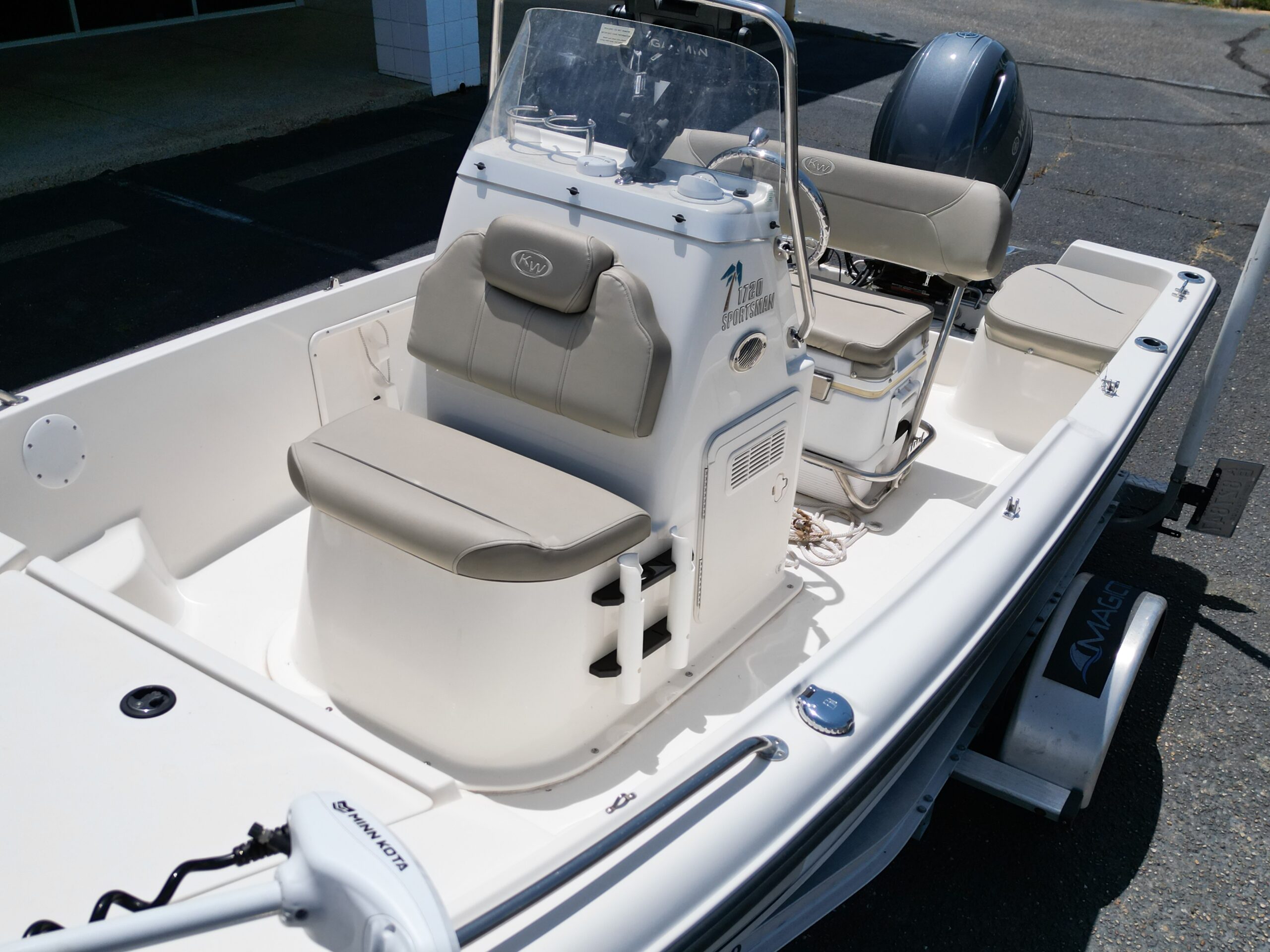 LOW PROFILE TRAILER. (designed to fit in most garages) LOW HOURS! Minn Kota iPilot Trolling Motor; Garmin GPS; Bluetooth Radio