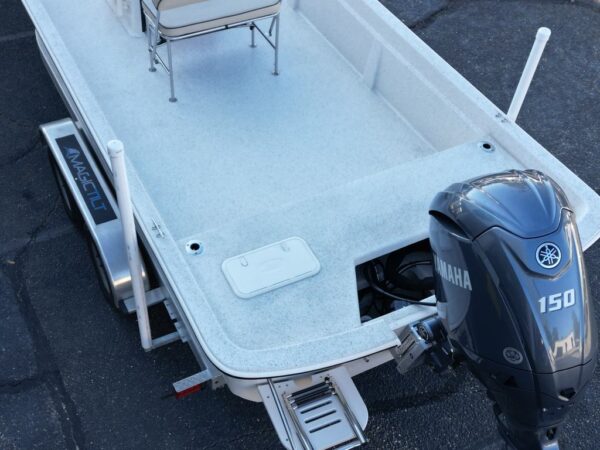 Boat is equipped with a 150 hp Yamaha with very Low hours and a Magic tilt tandem axle trailer