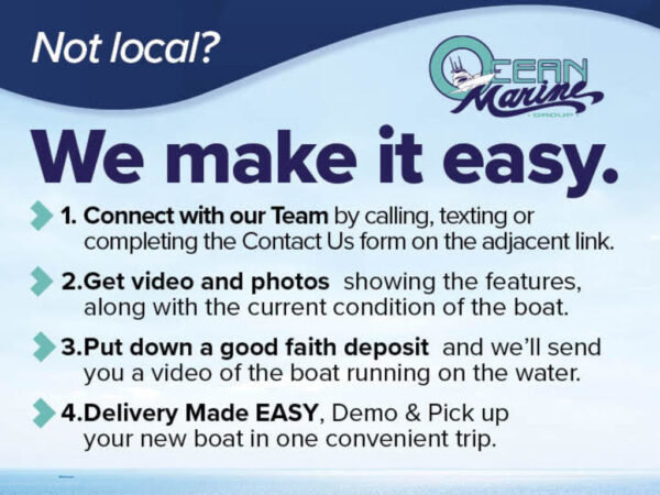 Ocean Marine Boats carry only the best Pre-Owned boats. All boats are water tested and thoroughly inspected by a certified technician prior to being listed on our website..