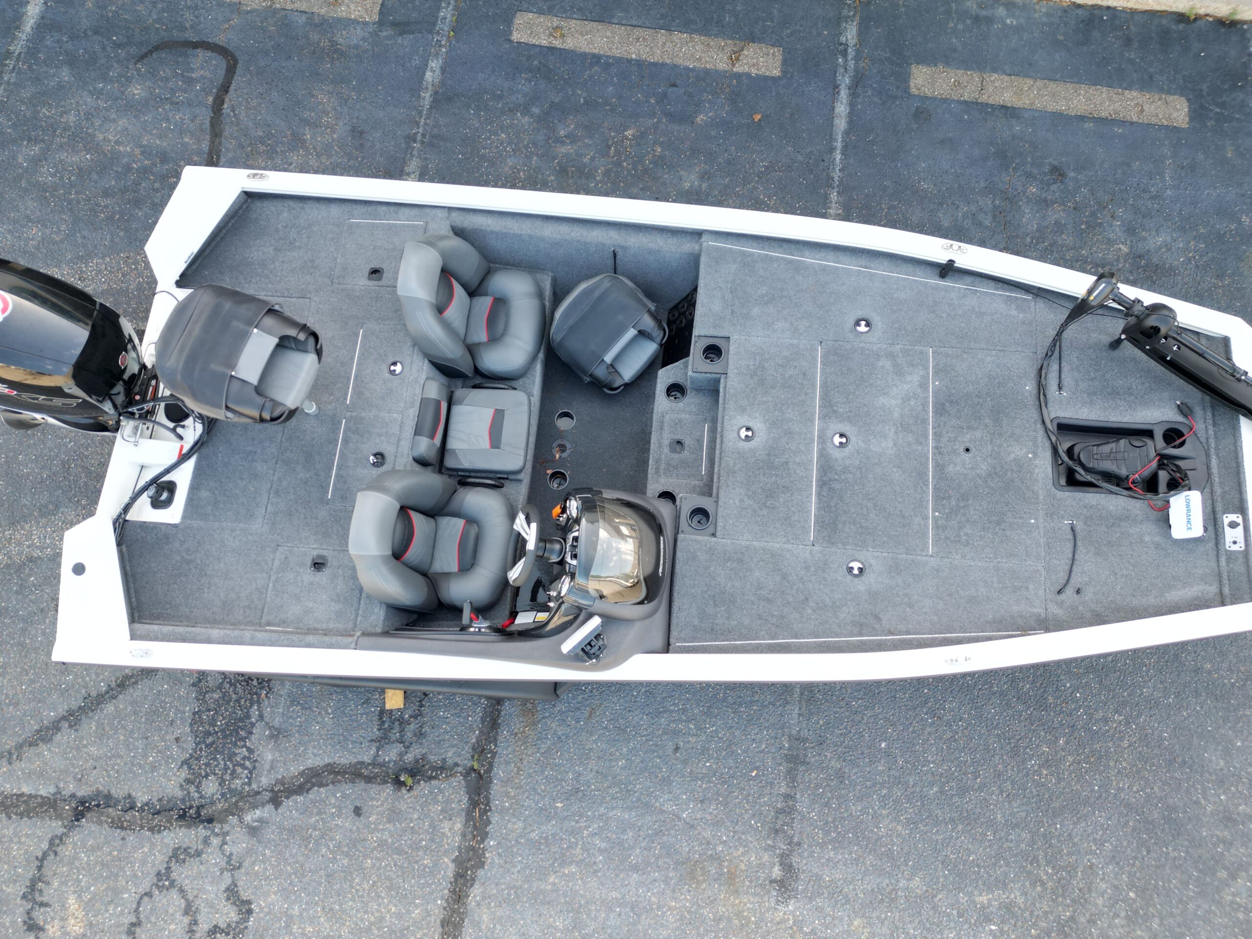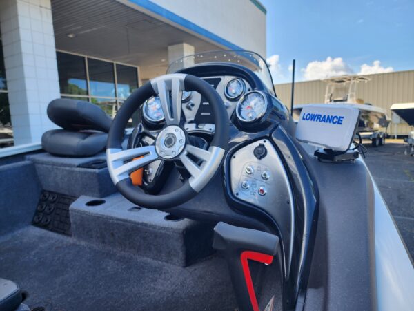 • Dual Lowrance Hook 5 GPS/Fishfinders – Provides reliable sonar imaging and navigation at both the console and bow, helping you locate fish and structure with confidence.