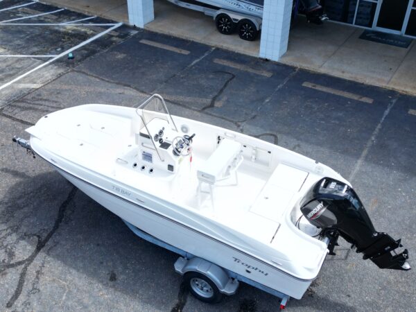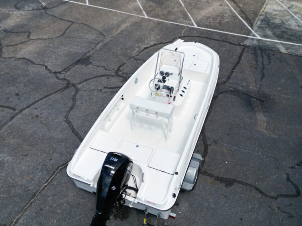 Center console design with fiberglass M‑hull, offers both stability and agility—great for shallow waters and everyday cruising.