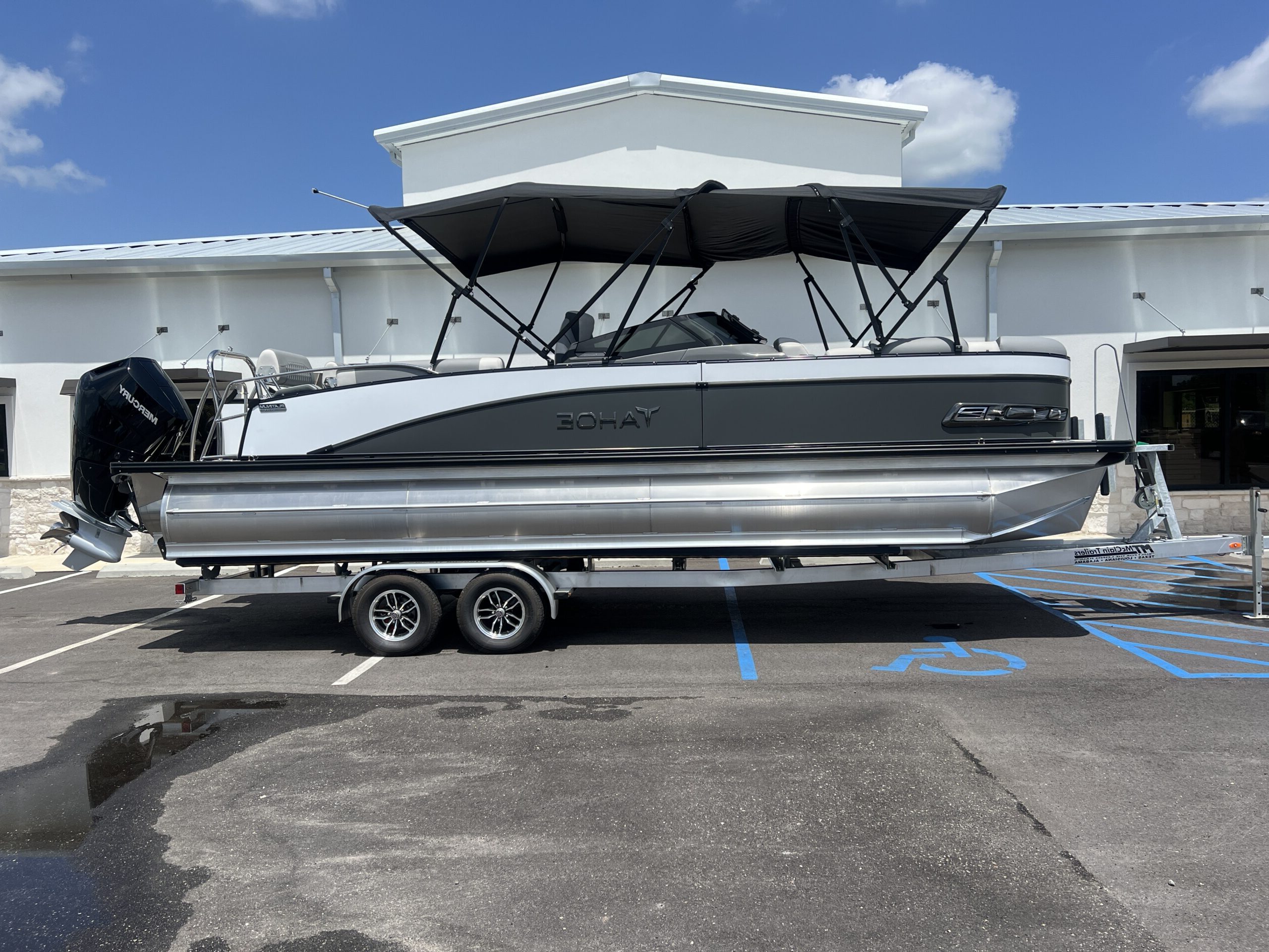 27 feet of pleasure awaits in this Tahoe CAS QLSW 25T. It's powered by a 400HP Mercury Verado, and features rear lounge seating, and Premium Sound, Saltwater, RGB, Blackout, and Furniture Upgrade Packages. All said, it's the perfect combination of luxury and power! Available now at Ocean Marine Group.