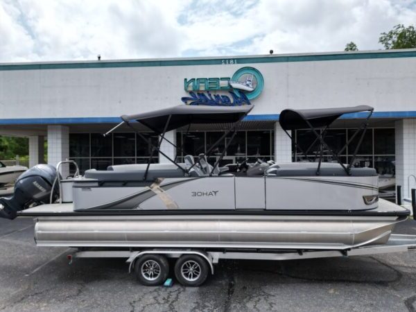 The 2025 25' Tahoe LTZ QL25T is a luxury pontoon boat designed for versatility, suitable for day cruising, freshwater fishing, and watersports. It features handcrafted furniture, a sleek design, and performance-oriented elements like triple pontoons and lifting fins, along with luxury amenities such as a high-end sound system, USB charging ports, and stylish accents. It is part of the LTZ Quad Lounger series, which has multiple layouts.