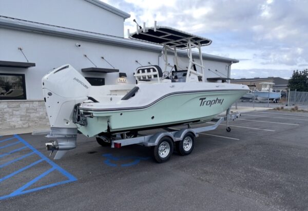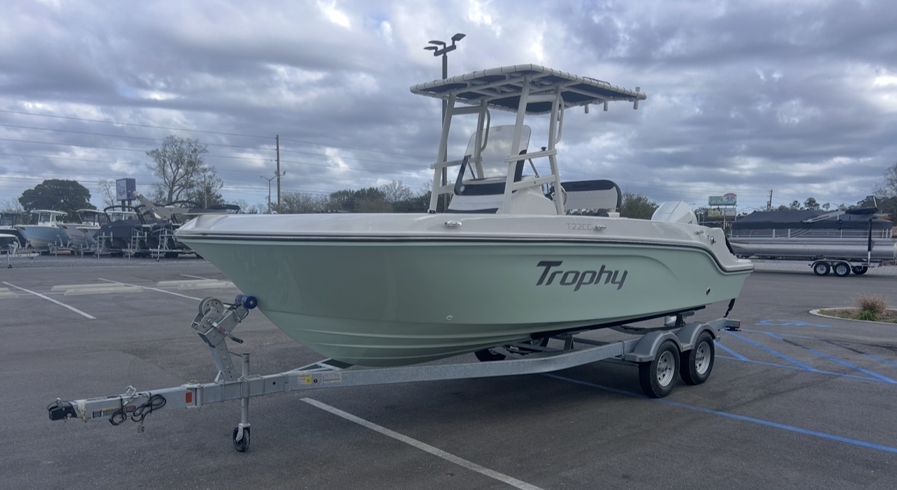 The 2026 Bayliner Trophy 22 powered by a Mercury 200XL delivers versatile center console performance with modern styling and smart fishing features. This brand-new model offers the perfect blend of inshore fishability, family-friendly comfort, and nearshore capability, making it an outstanding choice for Gulf Coast boaters seeking flexibility without sacrificing performance