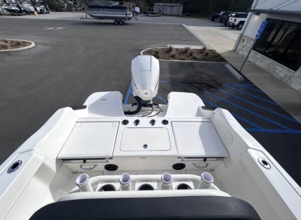 • Transom Shower with Demand Water System – Convenient freshwater rinse for swimmers, anglers, and sandbar days.