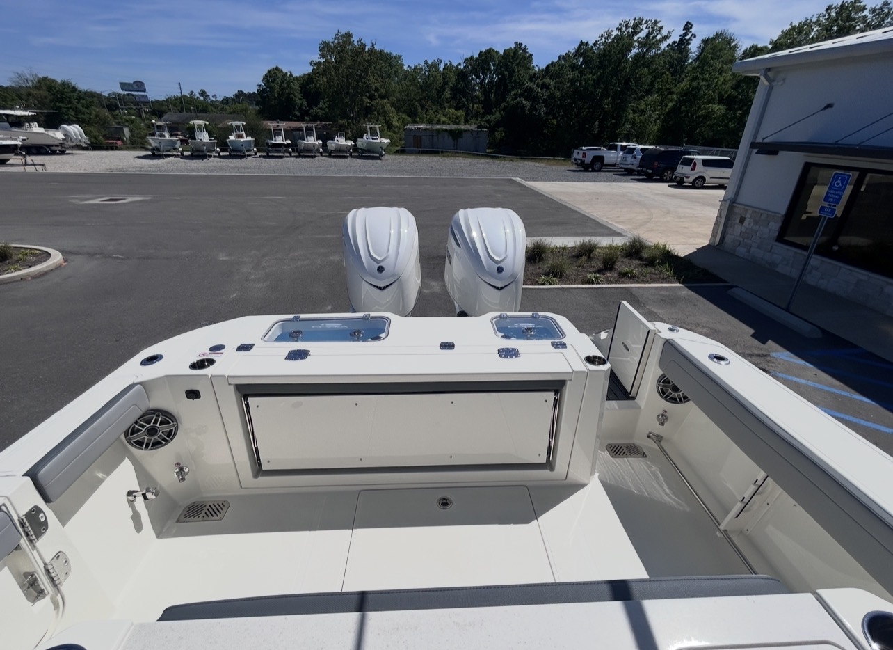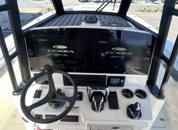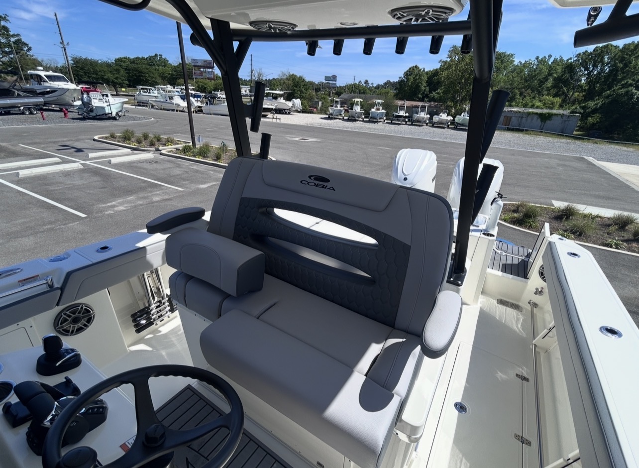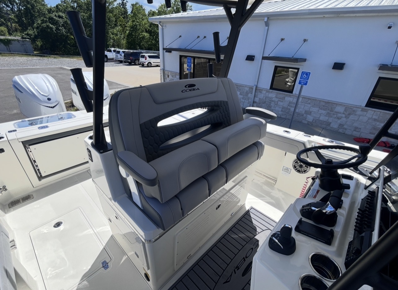 The 2026 Cobia 305CC delivers an exceptional blend of offshore capability, refined comfort, and cutting-edge technology. Powered by twin Yamaha 350XSA2 engines in white with integrated joystick controls, this center console offers smooth handling, precise maneuverability, and impressive performance. Finished in Pure White with Platinum Storm interior seating, this vessel stands out with a clean, modern aesthetic and is equipped with the Seakeeper Ride System for enhanced stability and comfort in varying sea conditions.