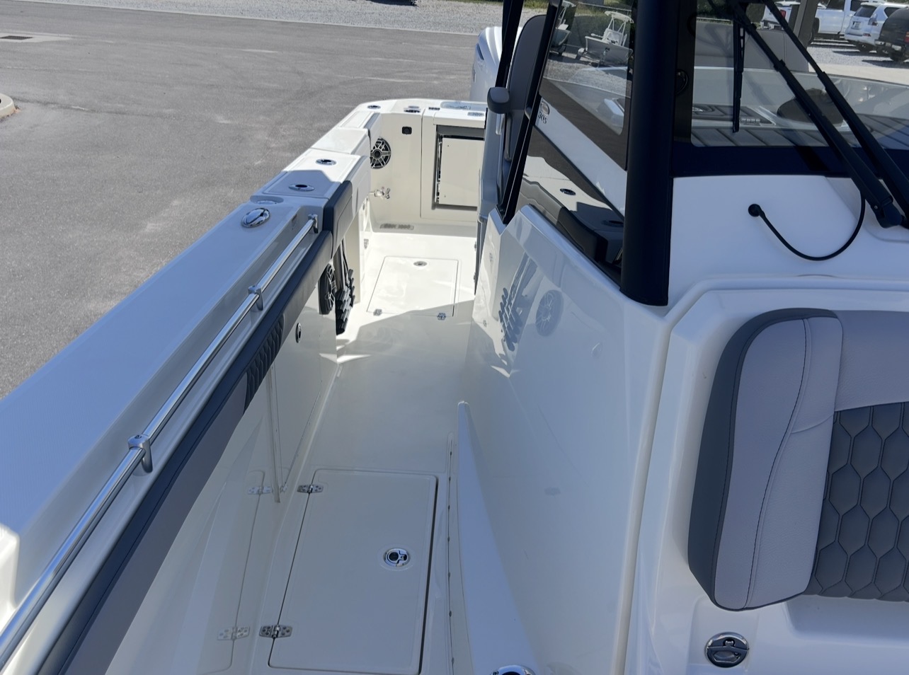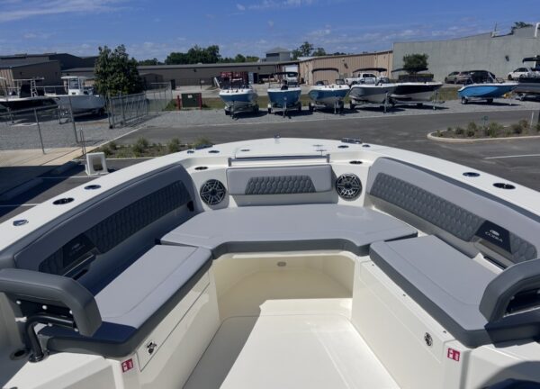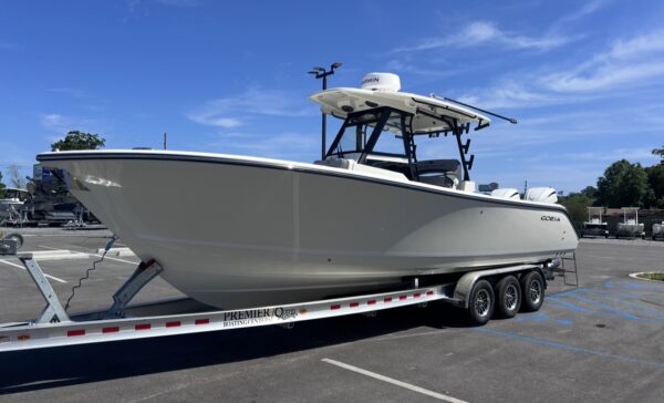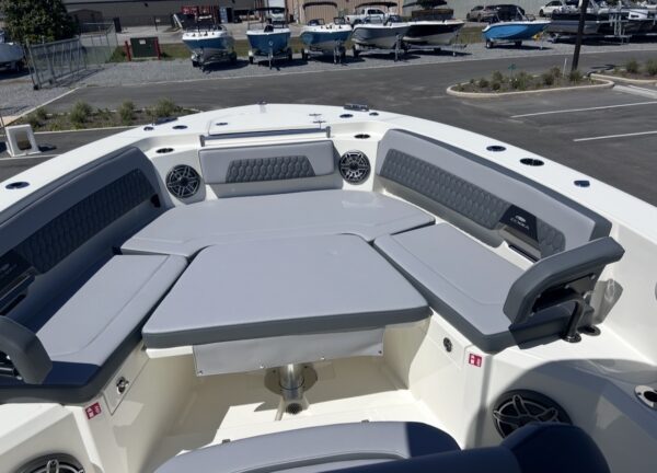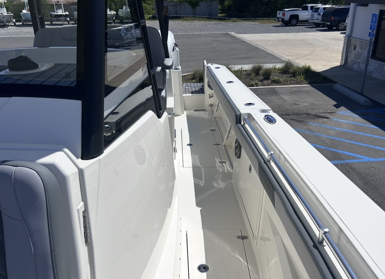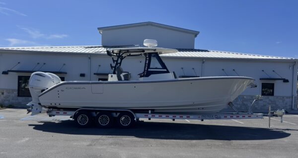 The 2026 Cobia 305CC delivers an exceptional blend of offshore capability, refined comfort, and cutting-edge technology. Powered by twin Yamaha 350XSA2 engines in white with integrated joystick controls, this center console offers smooth handling, precise maneuverability, and impressive performance. Finished in Pure White with Platinum Storm interior seating, this vessel stands out with a clean, modern aesthetic and is equipped with the Seakeeper Ride System for enhanced stability and comfort in varying sea conditions.