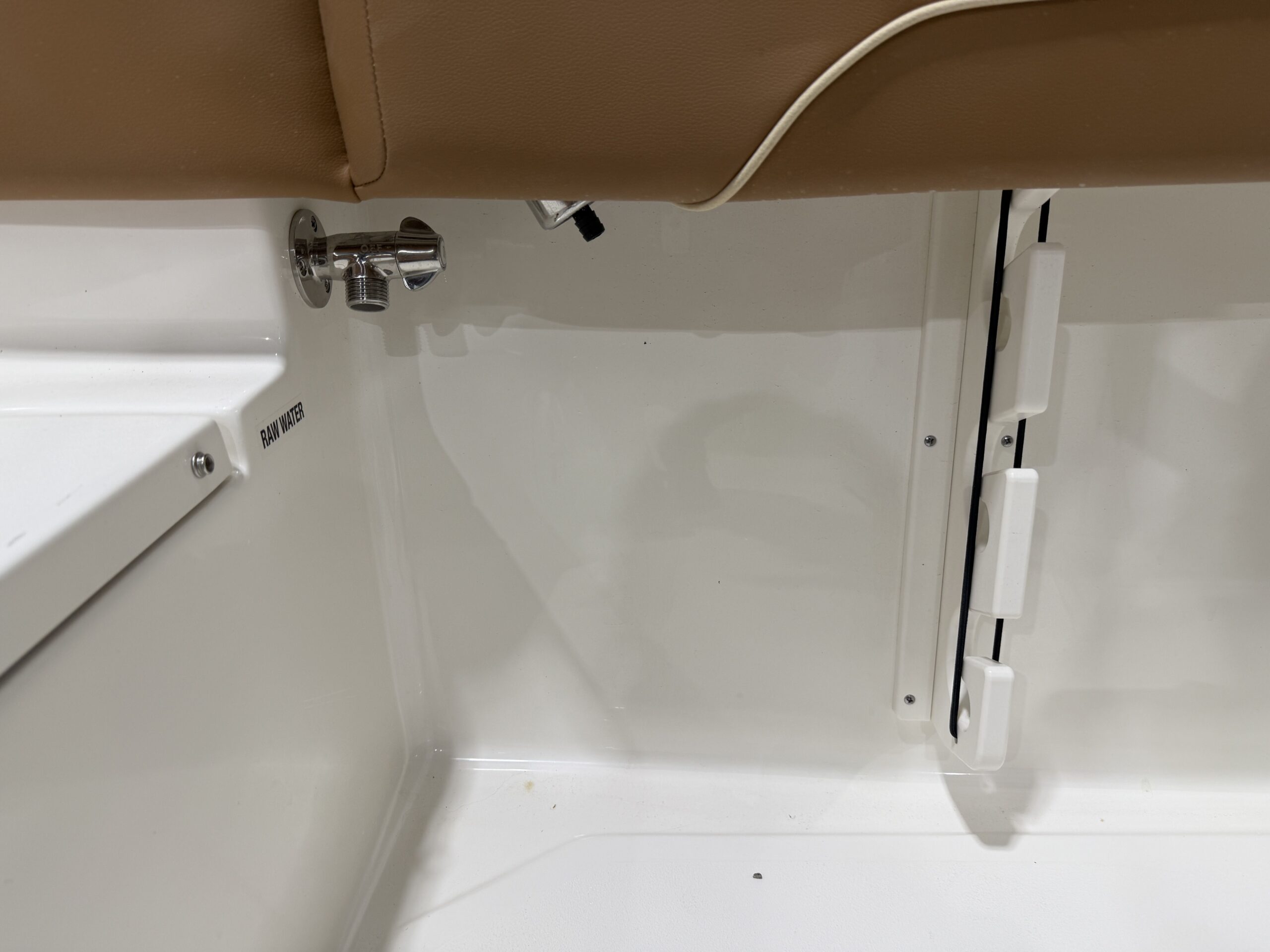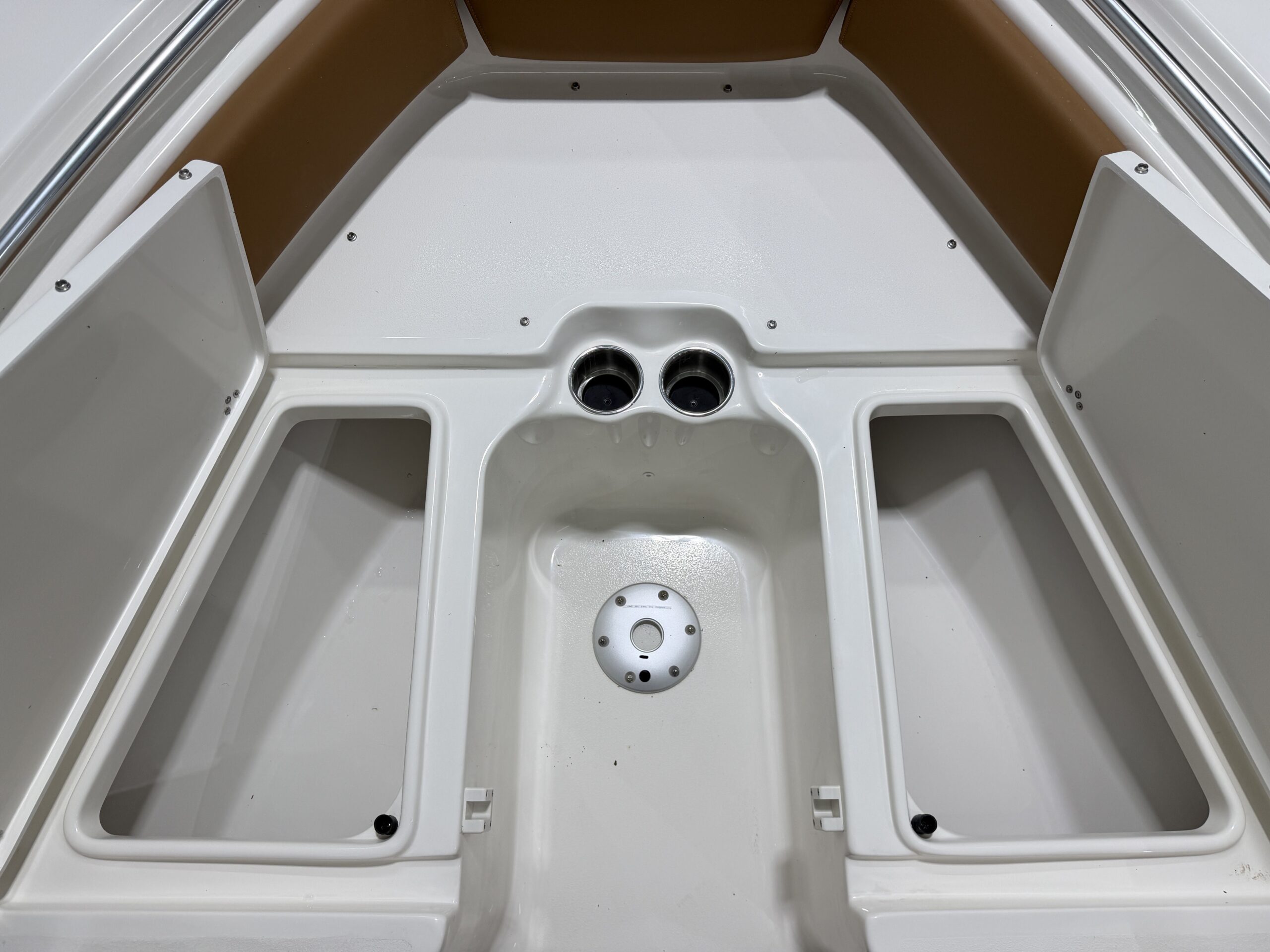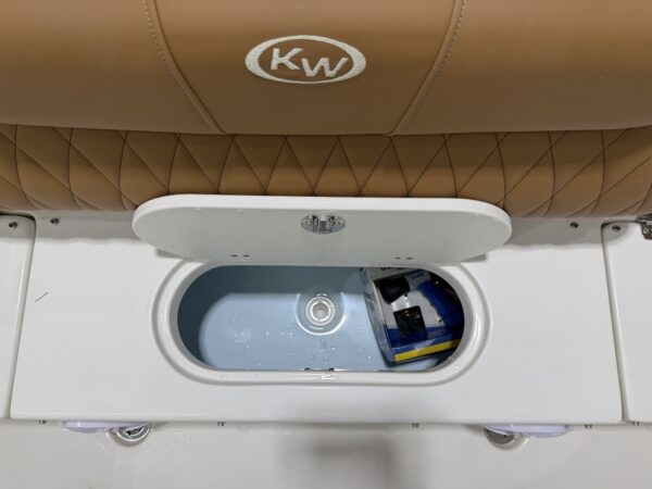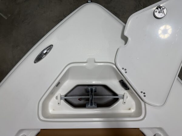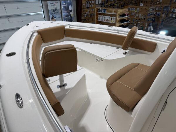 Up front, the spacious bow easily converts from a fishing platform to a relaxing lounge area with bow cushions, removable backrests, and a bow table with filler cushion—perfect for entertaining friends or enjoying a day on the water. Additional amenities like a wireless phone charger, raw water washdown, and underwater lights round out the package.