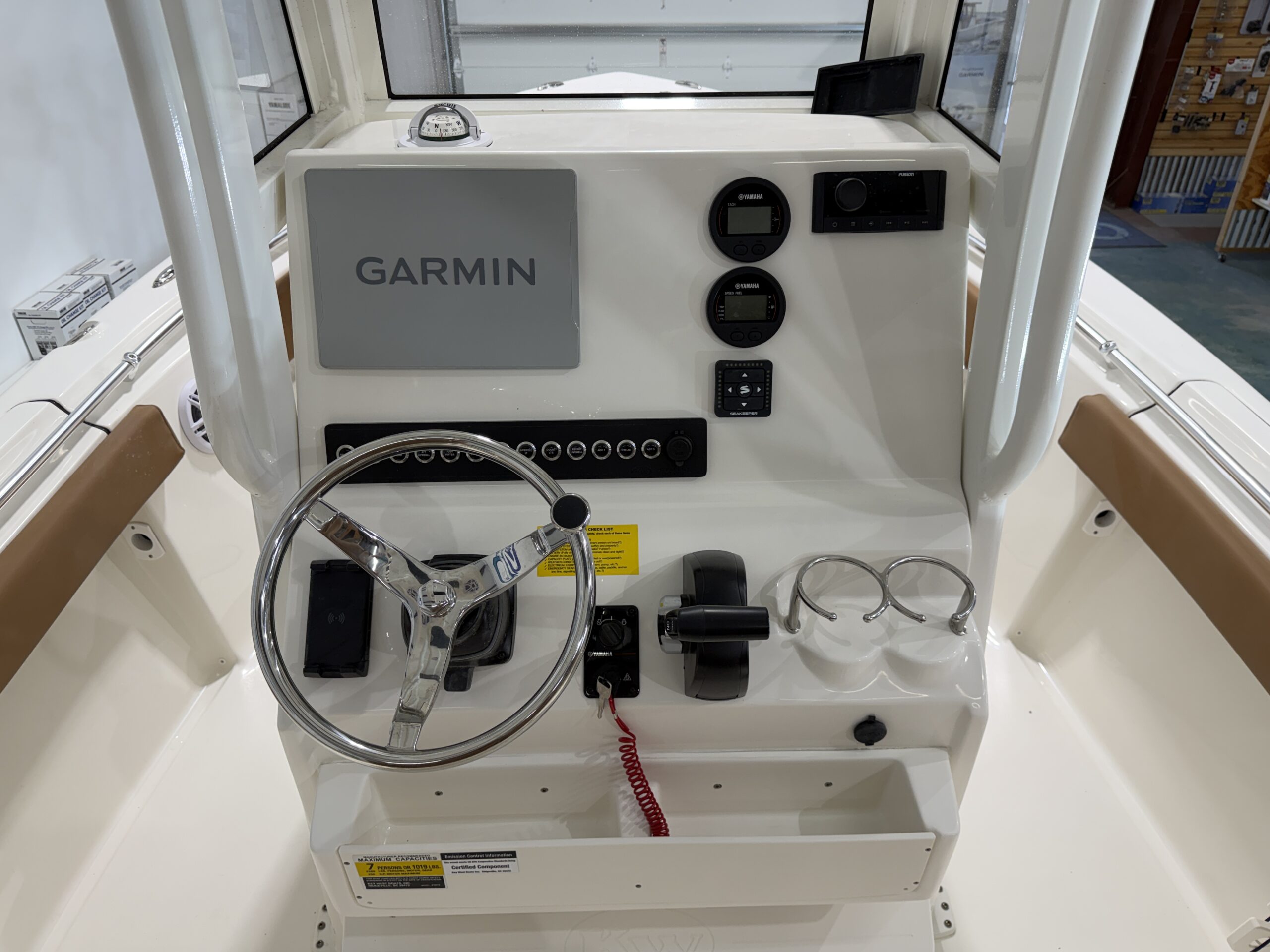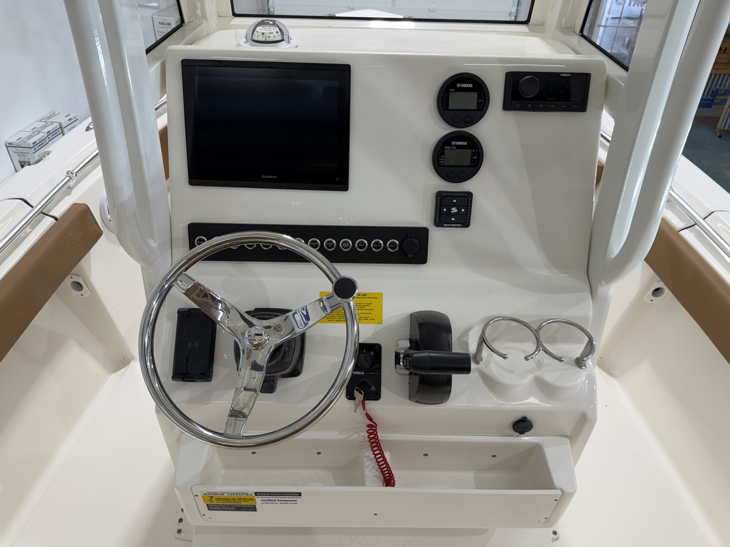 Designed with both anglers and families in mind, this 219FSR is loaded with premium upgrades. The Seakeeper Ride System actively stabilizes the boat underway, reducing pitch and roll for a smoother, more comfortable ride in changing conditions. At the helm, the Garmin GPSMAP 1042xsv paired with Yamaha Command Link Gauges provides a clean, modern display with all your navigation, sonar, and engine data easily accessible.