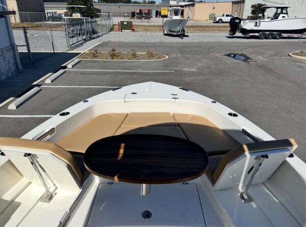• Full Bow Cushion Package w/ Teak Table and Bolster Sets — Maximizes comfort and seating space up front with premium cushioning and a versatile table for dining or drinks.