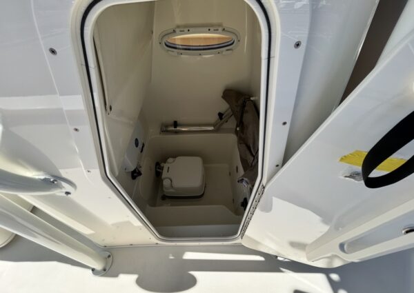 • Head w/ Pump-Out Deck Fitting — Onboard marine head with pump-out connection for convenience on extended trips.