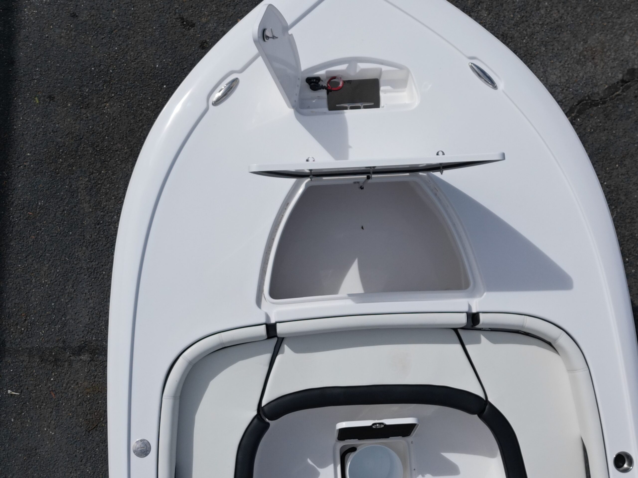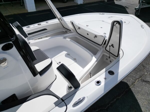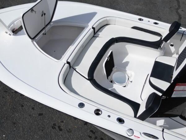 Ample rod storage (lock‐able rod storage for 7.5’ rods, under gunwale storage for longer rods).