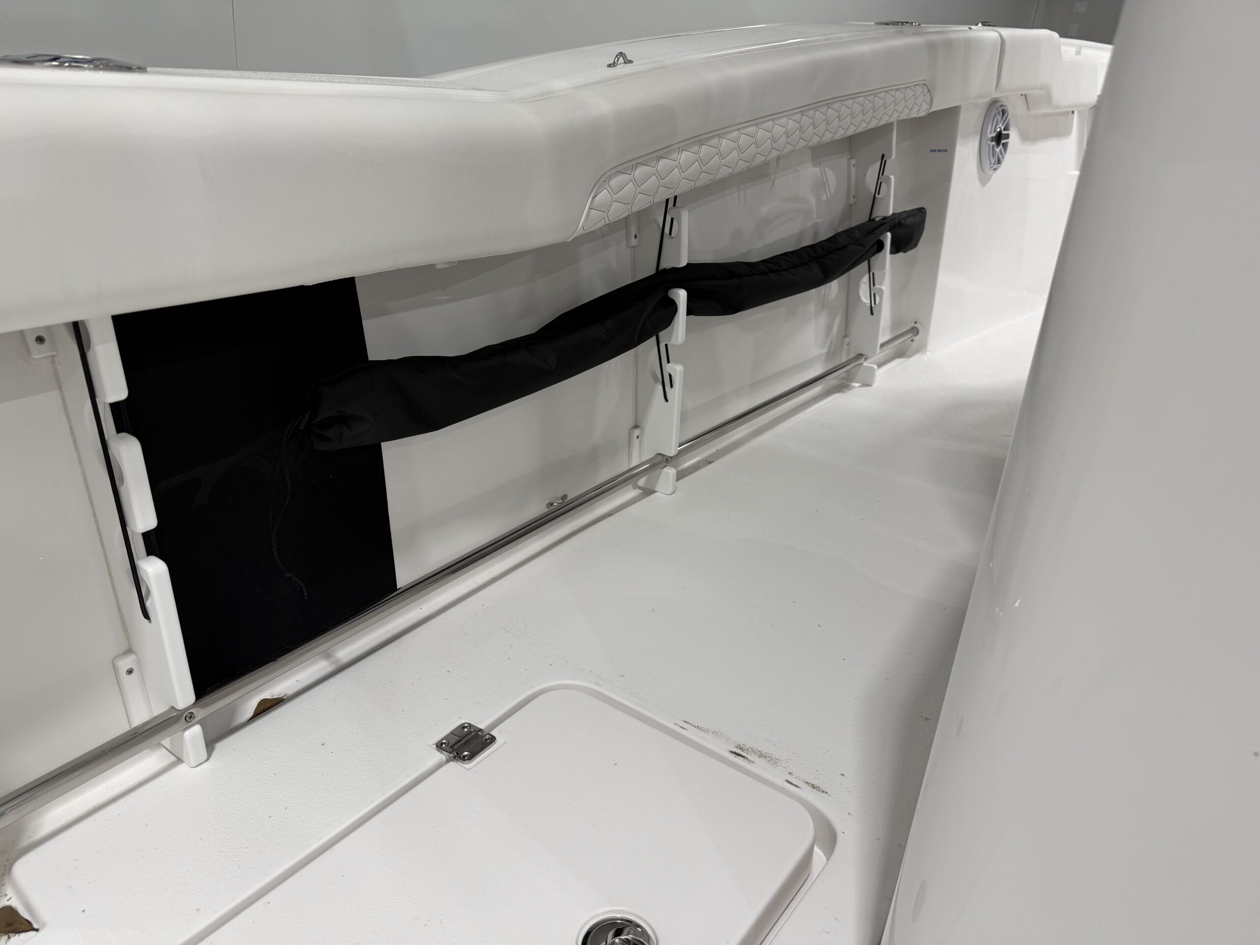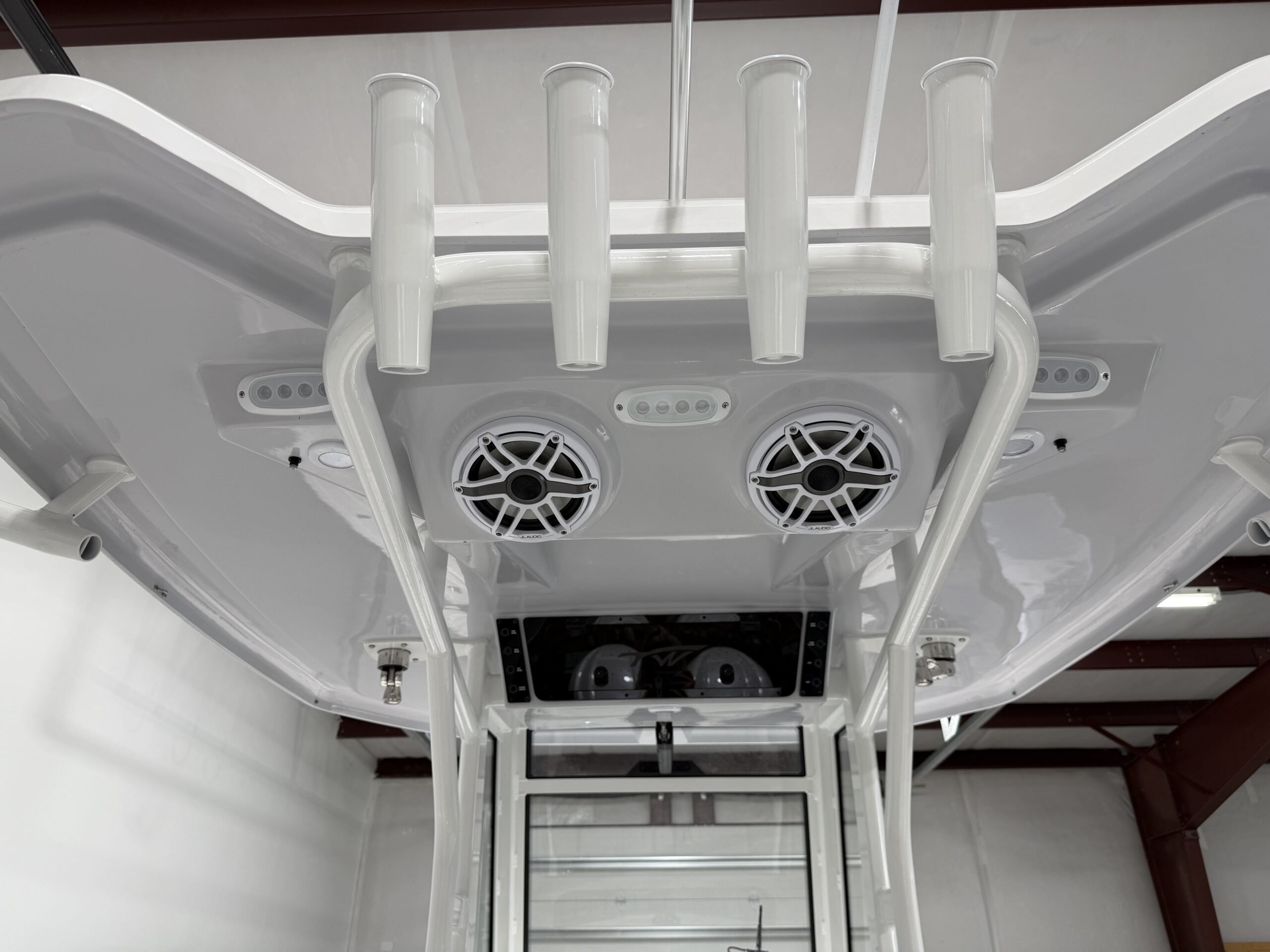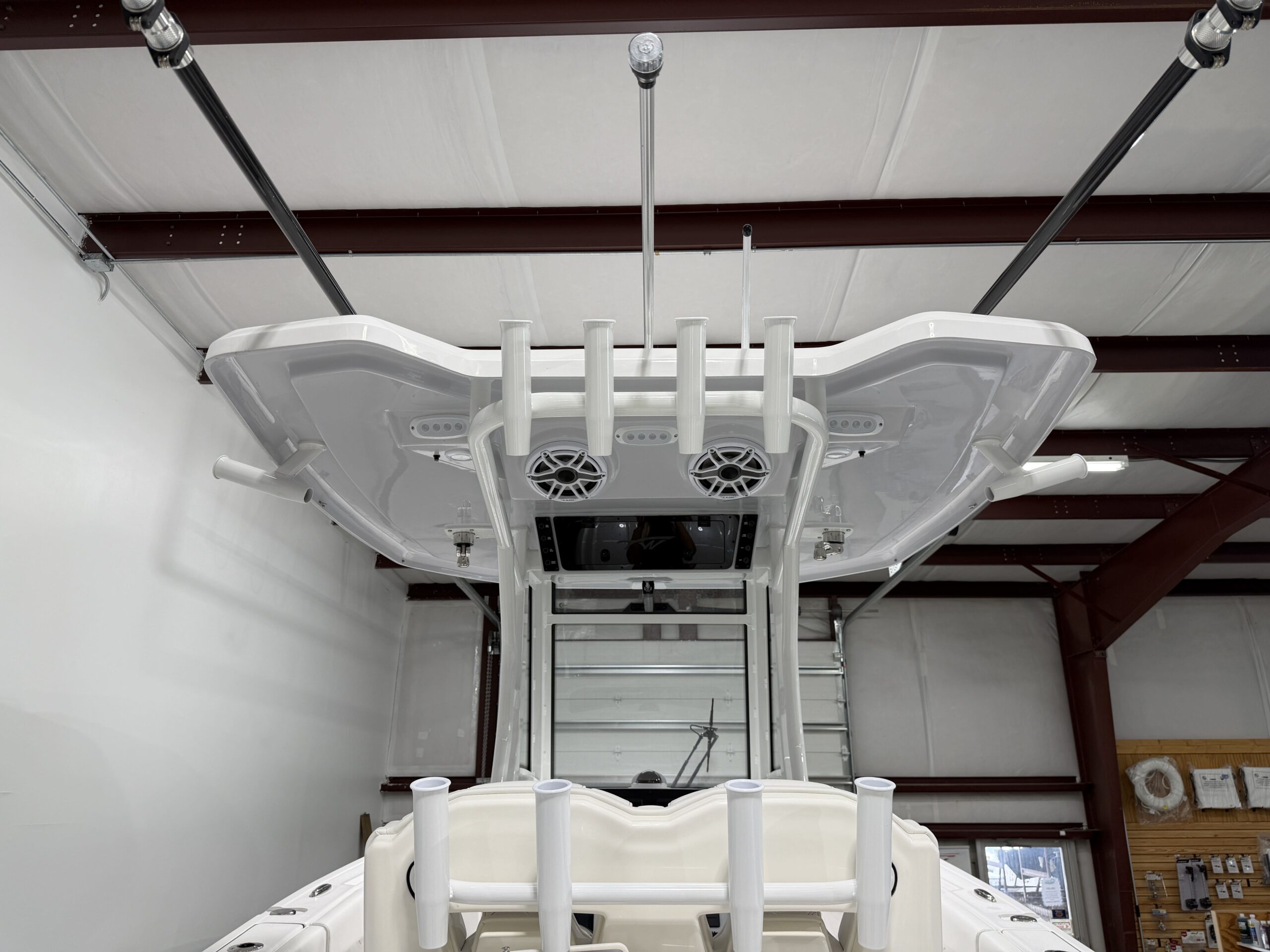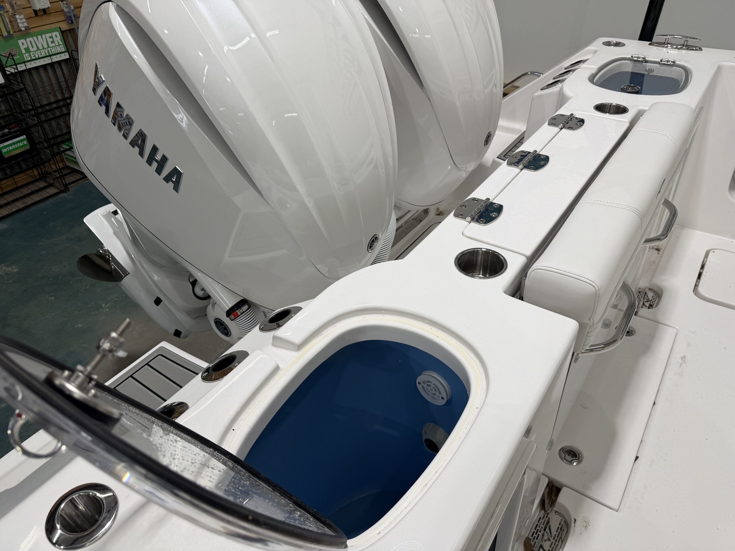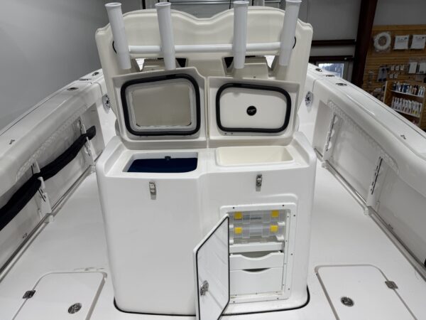 - Fiberglass Leaning Post with 30-Gallon Livewell, Tackle Center & Sink