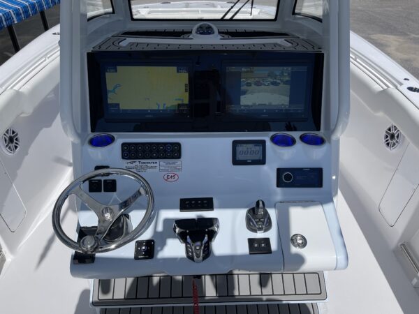 The 2026 Tidewater 302 CC Adventure is a top-tier 30-foot center console engineered for both serious offshore fishing and premium family cruising. With its broad 10′ 8″ beam and yacht-certified build, it delivers spacious comfort, seaworthy performance and the refinement of a larger vessel. Sporting twin Yamaha 350 hp outboards for potent thrust, this boat is designed to reach distant fishing grounds, take on wave demands and still return in style.